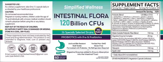 Simplified Wellness Intestinal Flora Probiotics 120 Billion CFUs 36 Strains