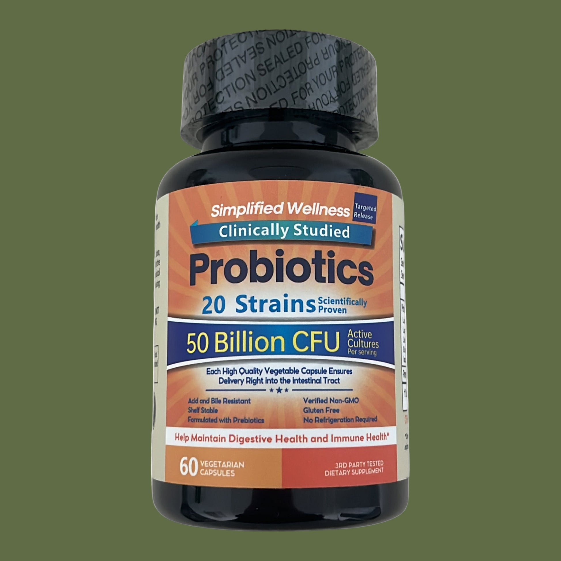 Simplified Wellness Digestive Health Probiotics 50 Billion CFUs 20 Strains.